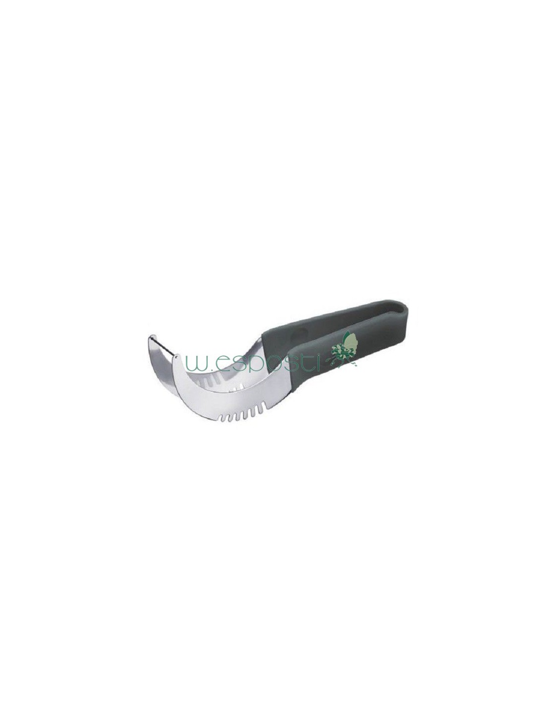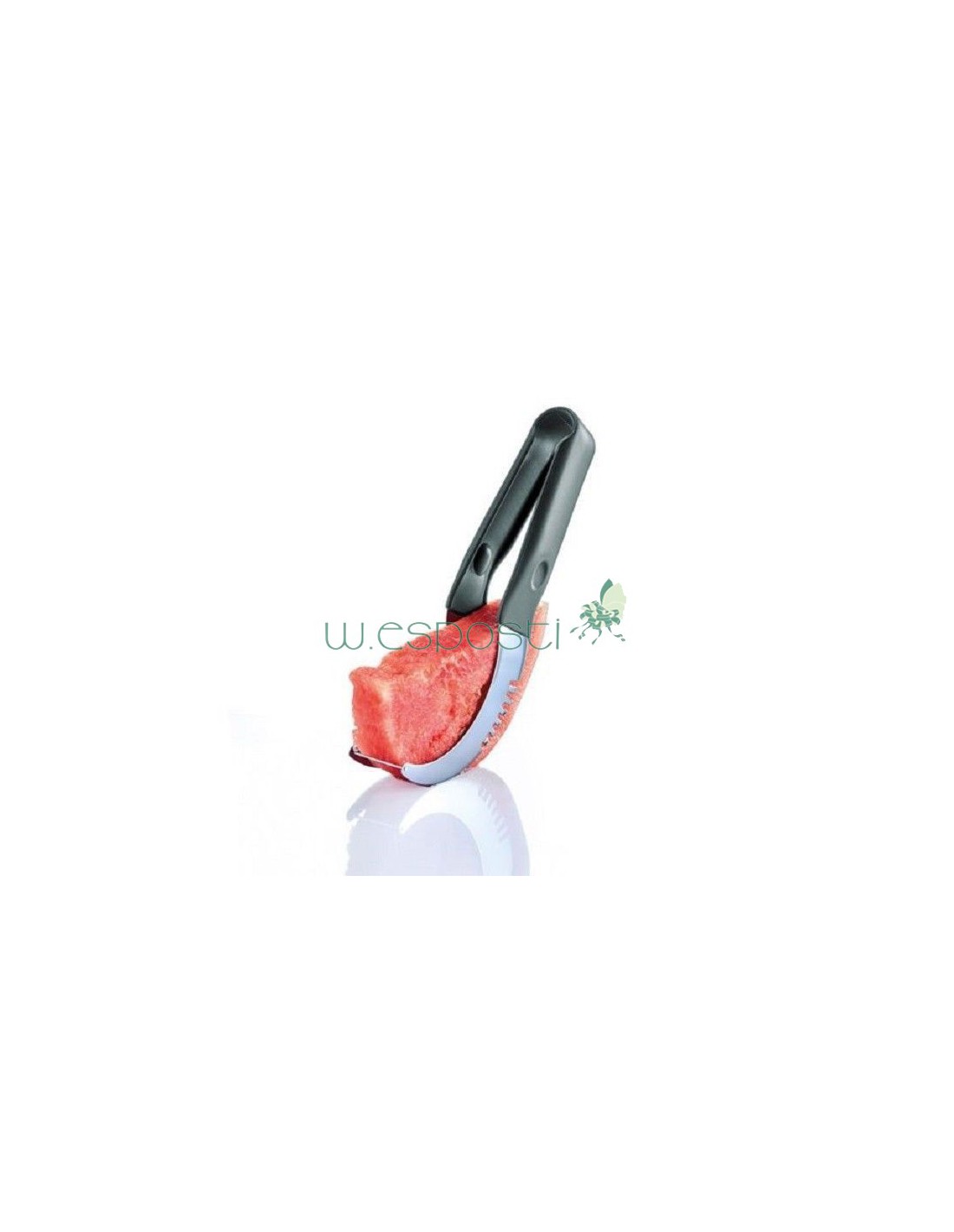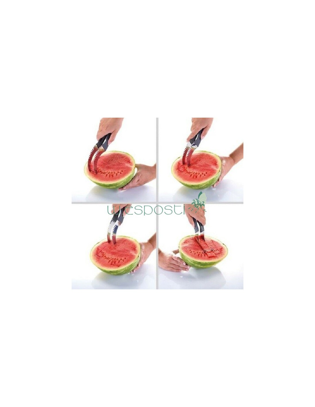 Comodissimo attrezzo per tagliare, affettare e servire l'anguria ( o melone , mango , avocado...) già senza la scorza in comode porzioni.