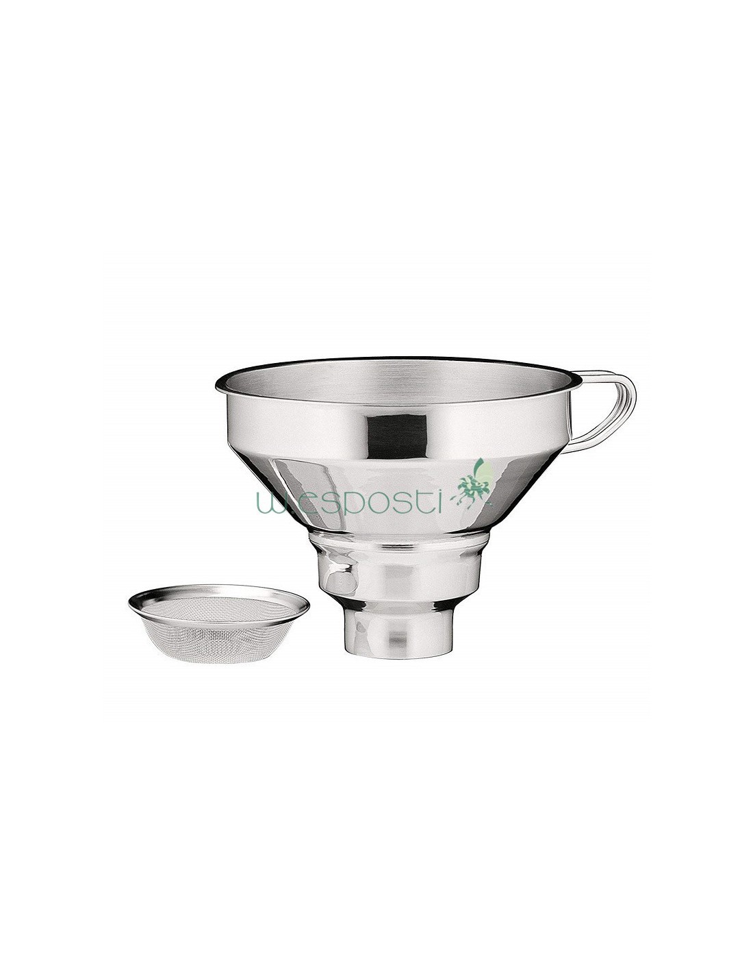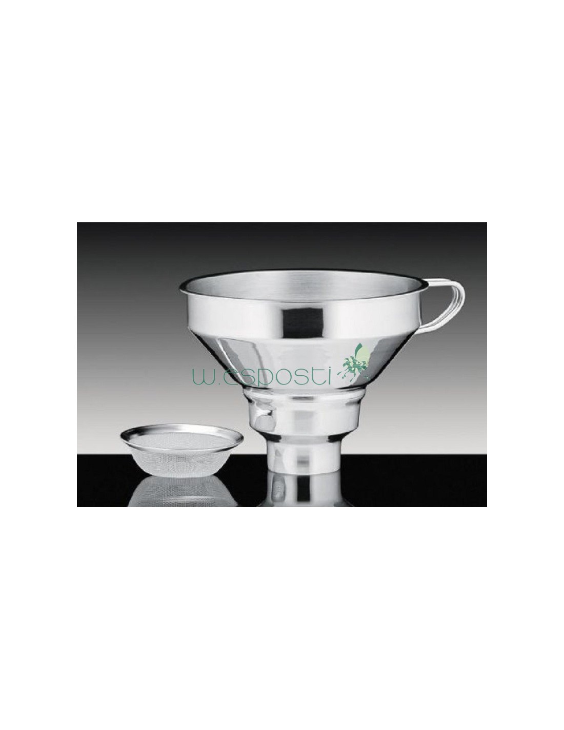Imbuto a bocca larga in acciaio inox con colino , specifico per filtrare marmellate, salse e confetture