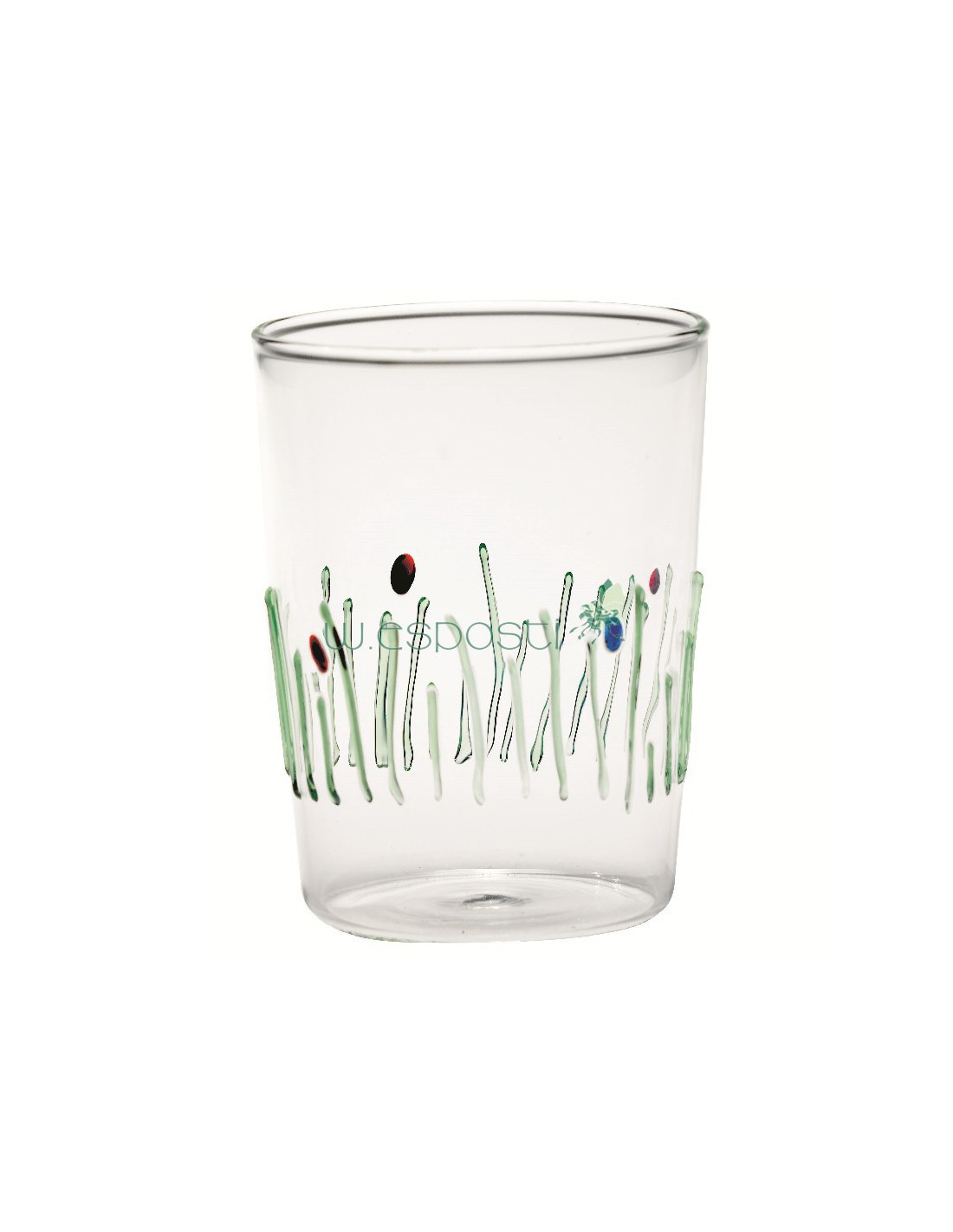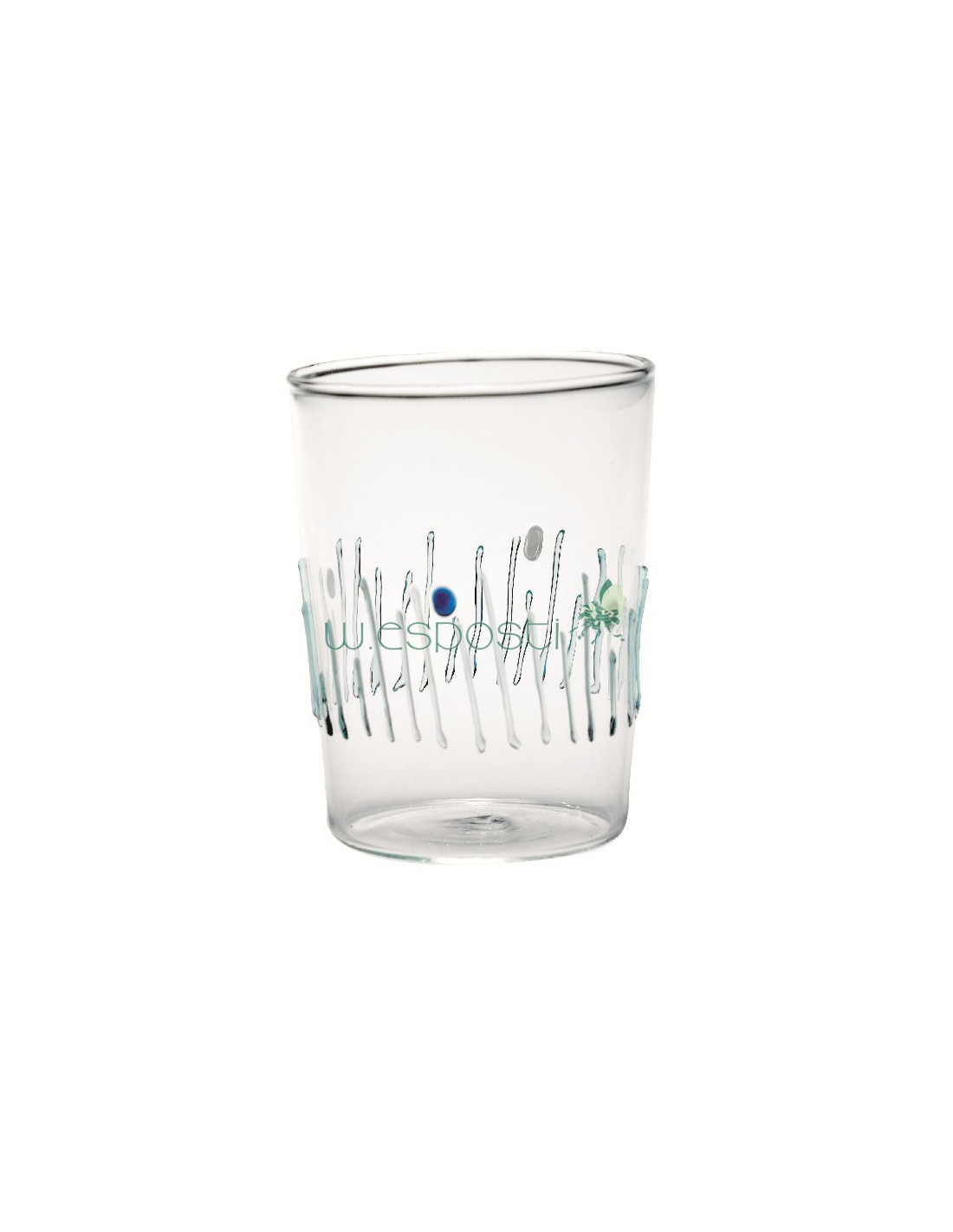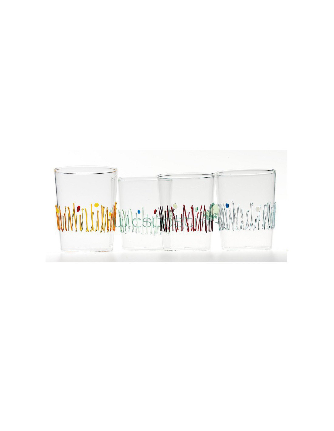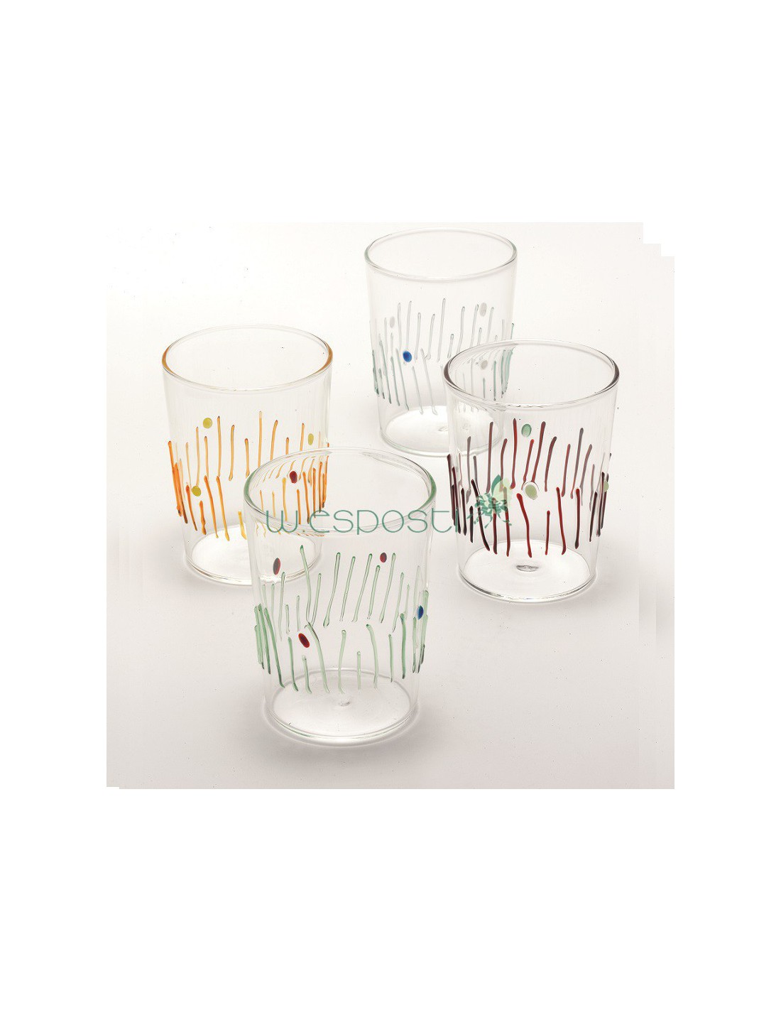 Set di 4 bicchieri disegnati del maetro muranese Federico De Majo simboleggianti i colori delle 4 stagioni, bianco e blu per l'inverno , verde e rosso per la primavera , giallo e