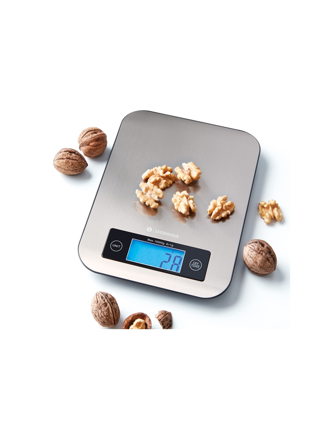 Capacità massima consentita 10 kg,g divisione 1 gr, l'unità di misura e volume sono convertibile (g, kg, oz, lb, ml).