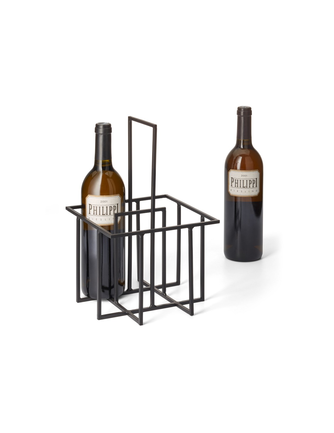 Cestino portabottiglie in acciaio verniciato nero-per 4 bottiglie