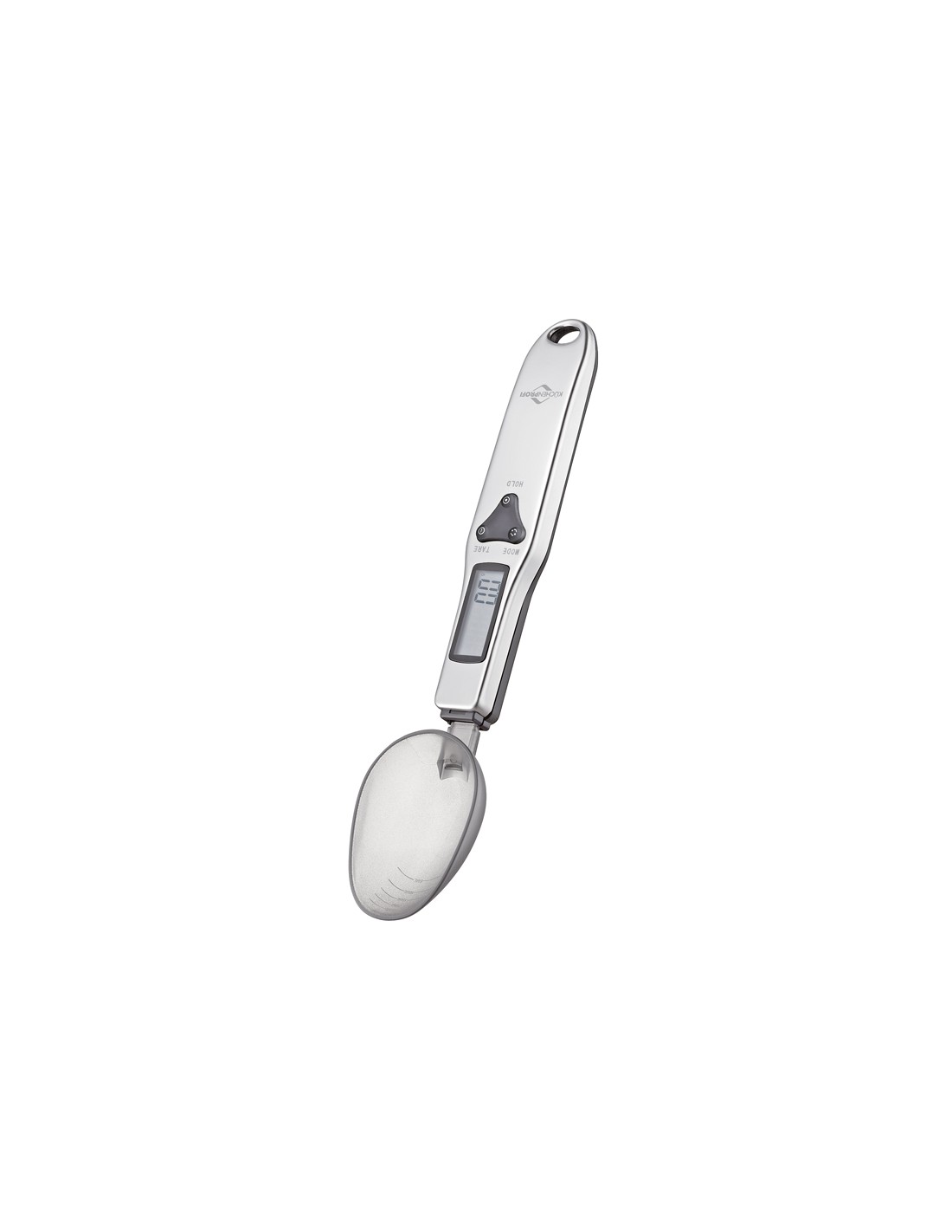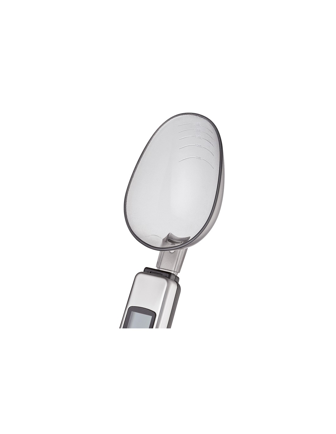 E' dotata di un cucchiaio rimovibile con scala volume fino a 25 ml, funzione HOLD e TARA, spegnimento automatico, indicatore di sovraccarico e batteria scarica.