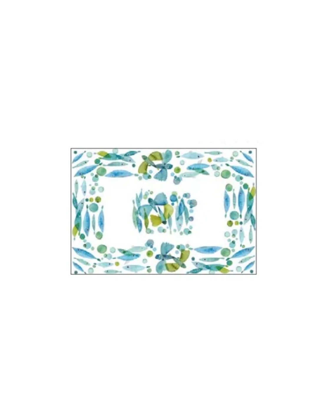 Il decoro in stile acquerello si ispira al mondo marino con i classici colori azzurri e acquamare