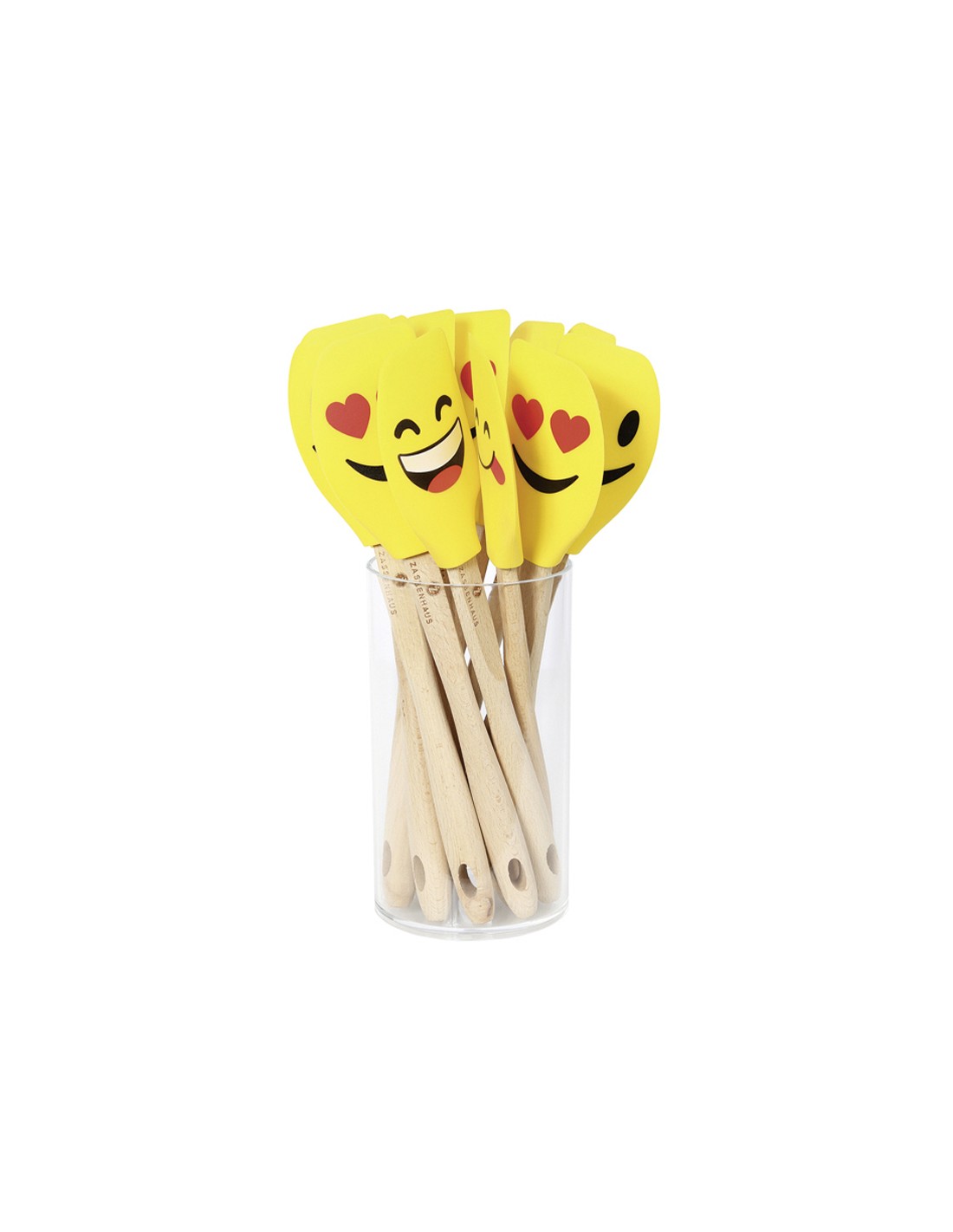 Simpatico ed utile leccapiatto in silicone e manico ergonomico in legno.