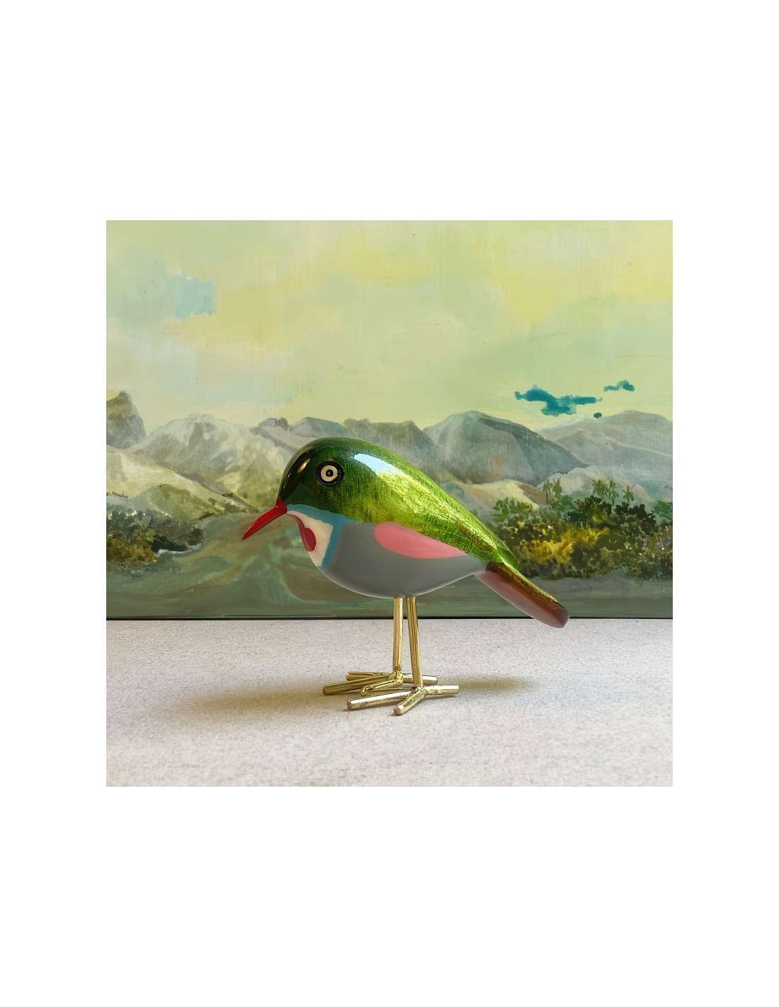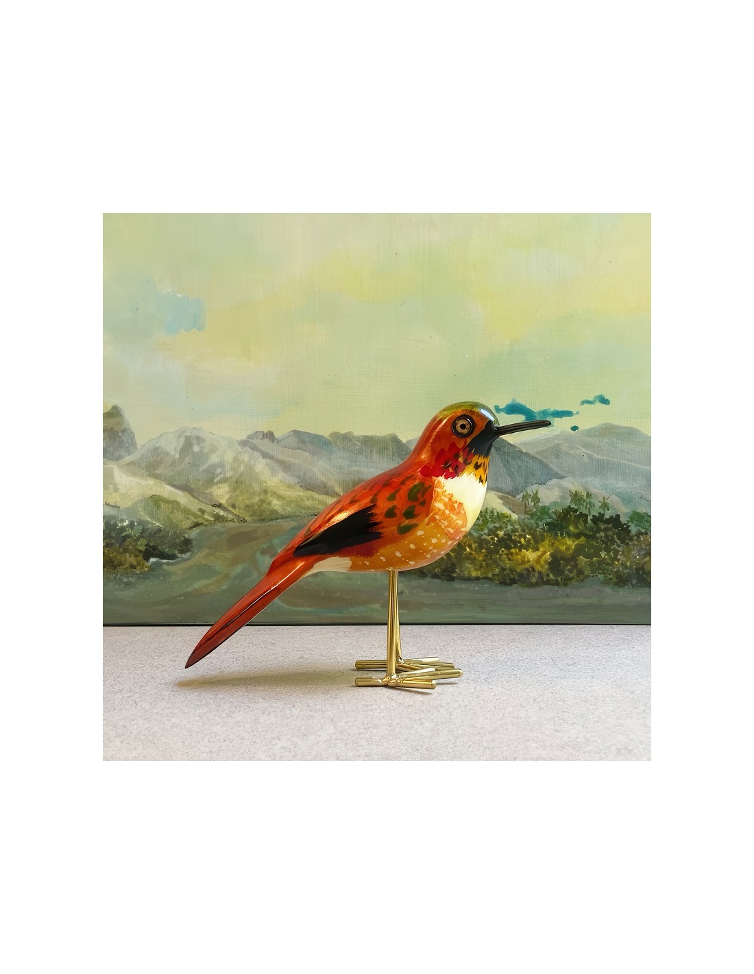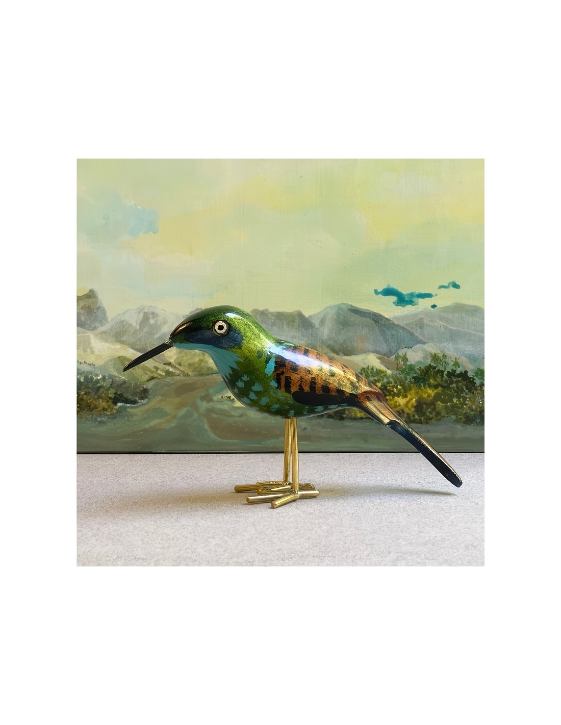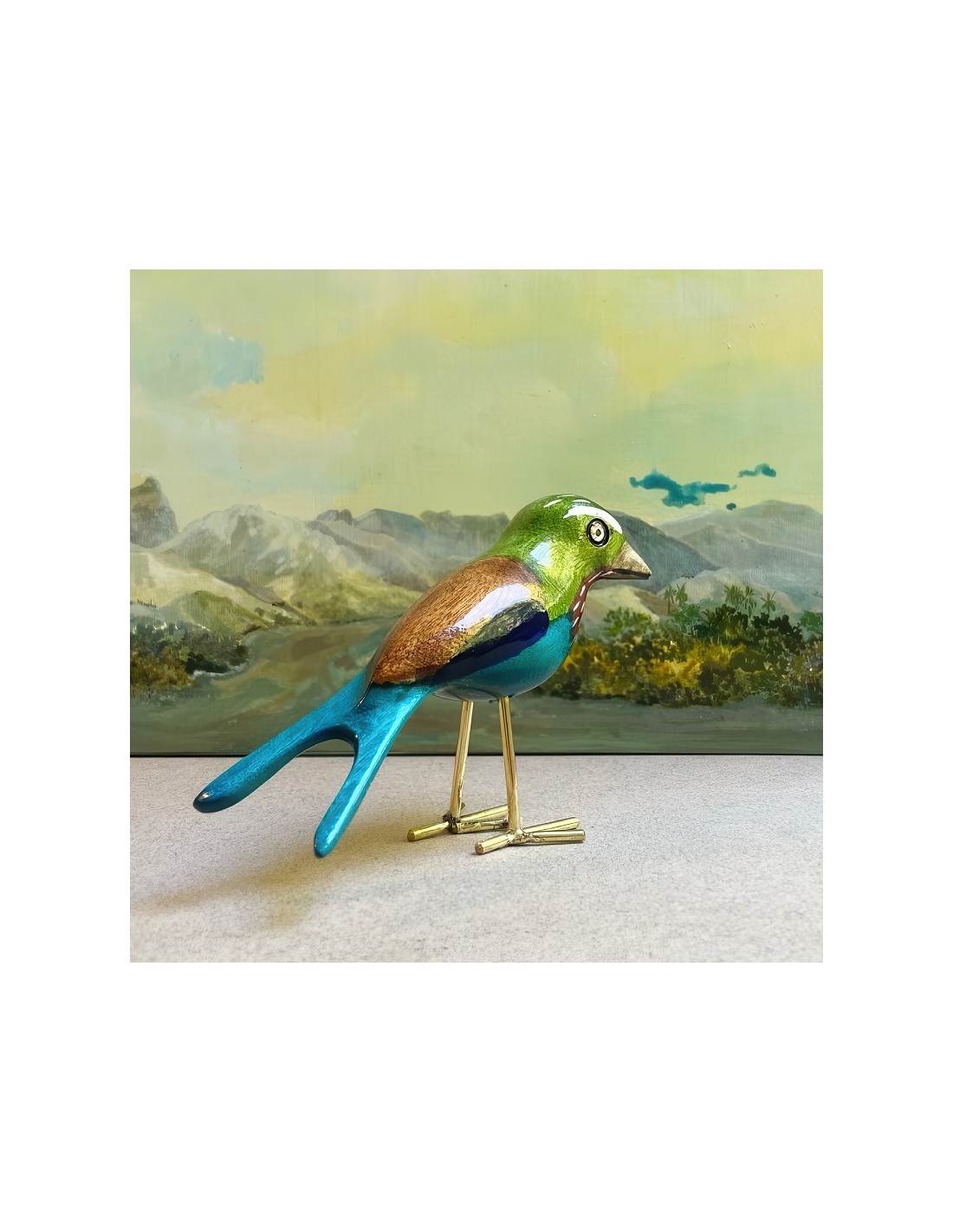 Amorevole serie di uccellini realizzati a mano da artigiani ornitologi nella Rift Valley (Nairobi) utilizzando scarti di legno jaracanda e ottone ricavato da vecchi rubinetti per l'acqua.