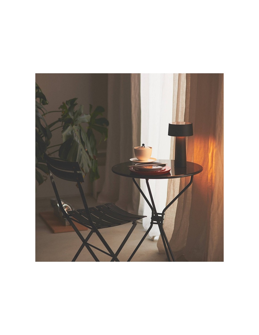 E' una luce nomade, facile da spostare in qualunque angolo della casa, ricaricabile e con una autonomia di 8 ore.
