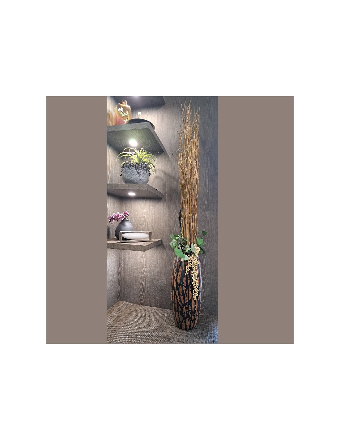 Vaso da terra Kapok in resina e bamboo cm.56,5