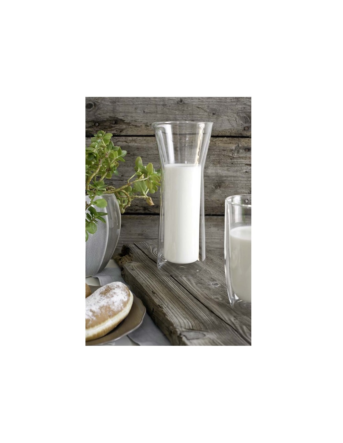Pratica caraffa da afferrare in vetro borosilicato a doppia parete che mantiene la temperatura di ciò che contiene e resiste alle alte e alle basse temperature.