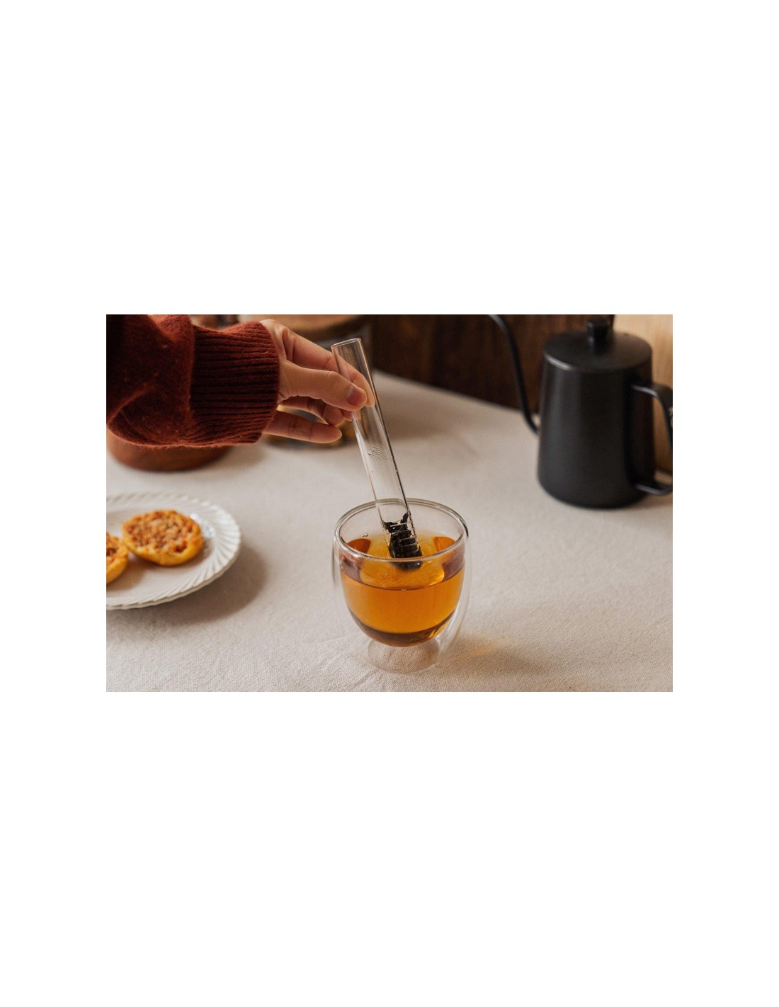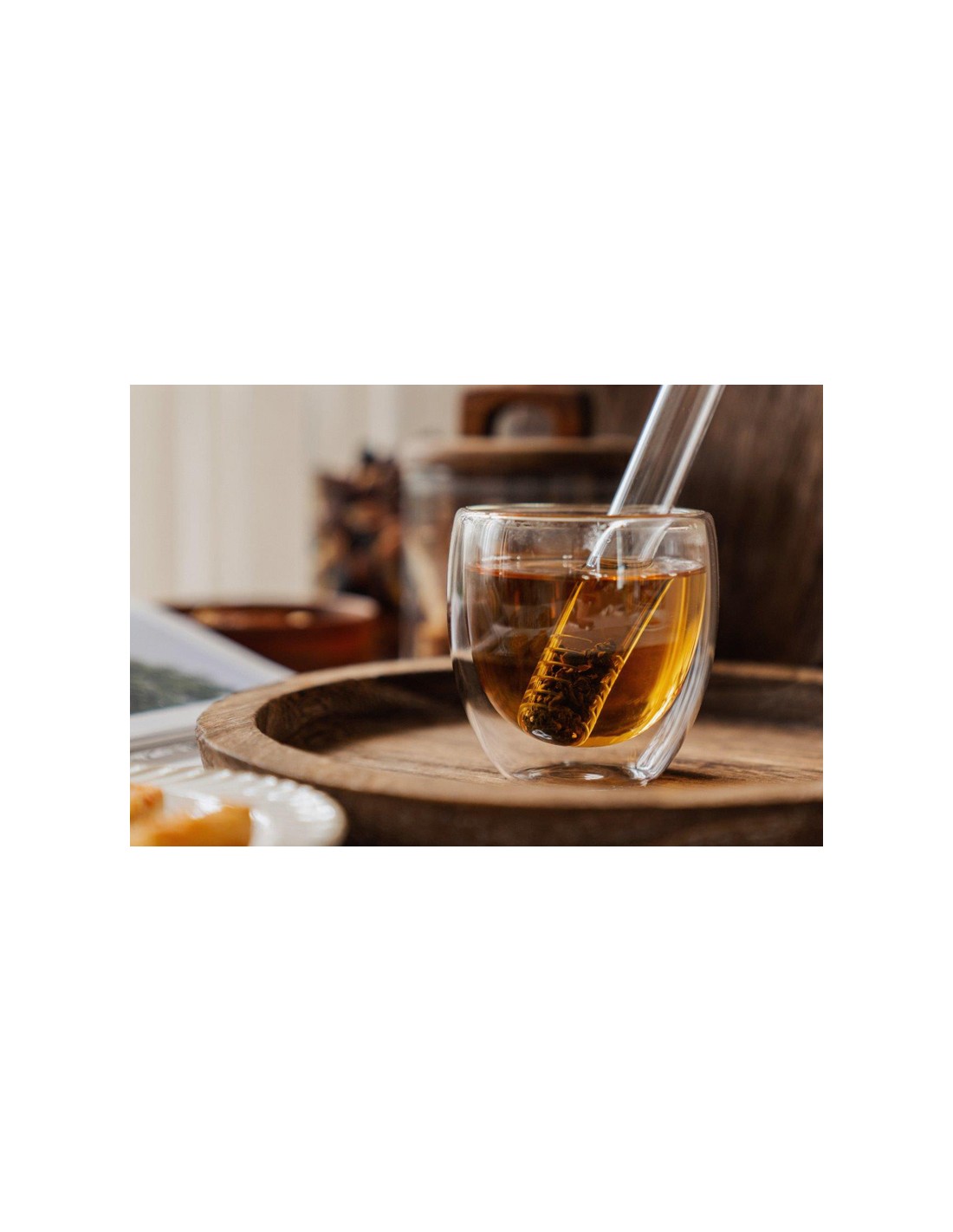 Prepara il tuo tè con un infusore ecologico realizzato in vetro borosilicato riciclato al 50% e sughero.