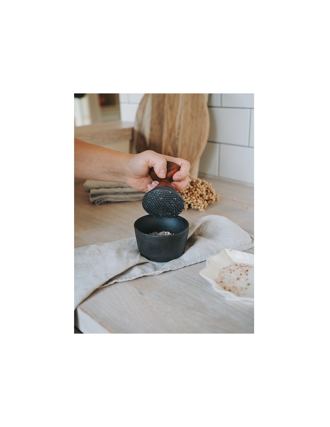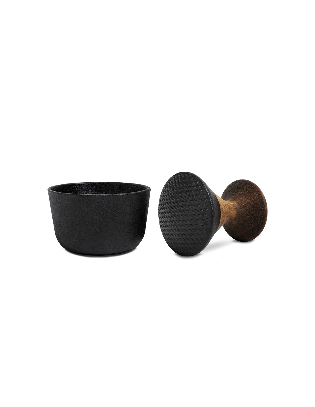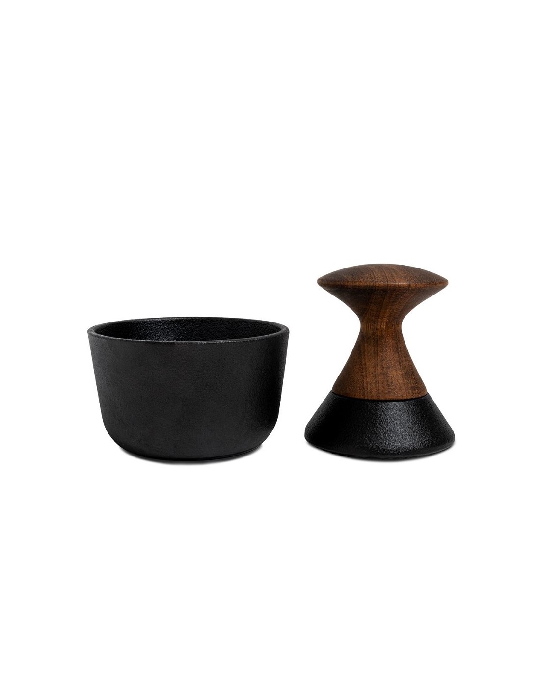 Realizzato in ghisa di alta qualità è perfetto per lavorare le spezie secche come pepe, semi di coriandolo, cumino o bacche aromatiche.