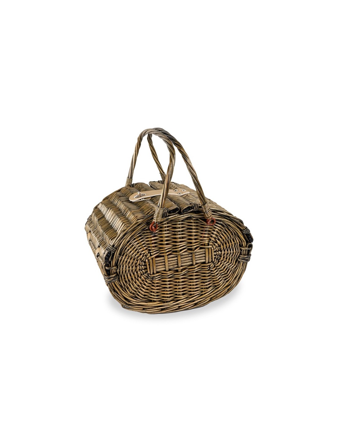 Cesto da picnic in vimini verde per 4 persone.