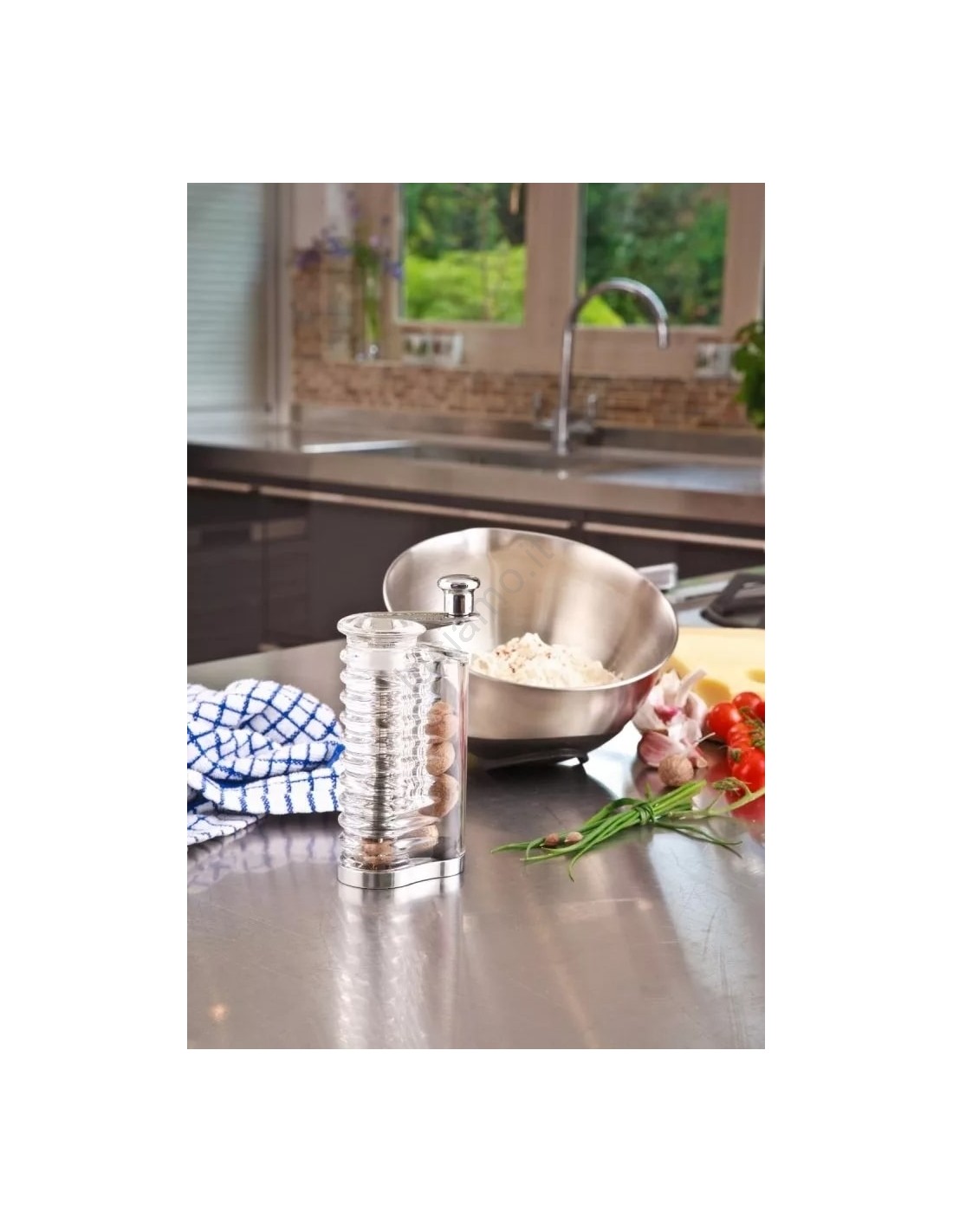 Il macinino ha uno scomparto che tiene fino a 6 noci moscate.