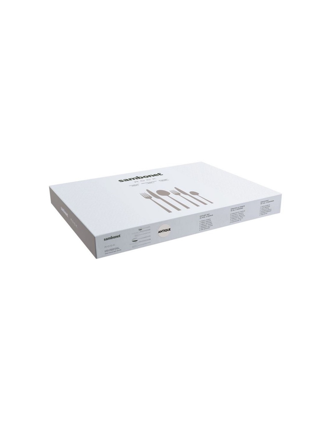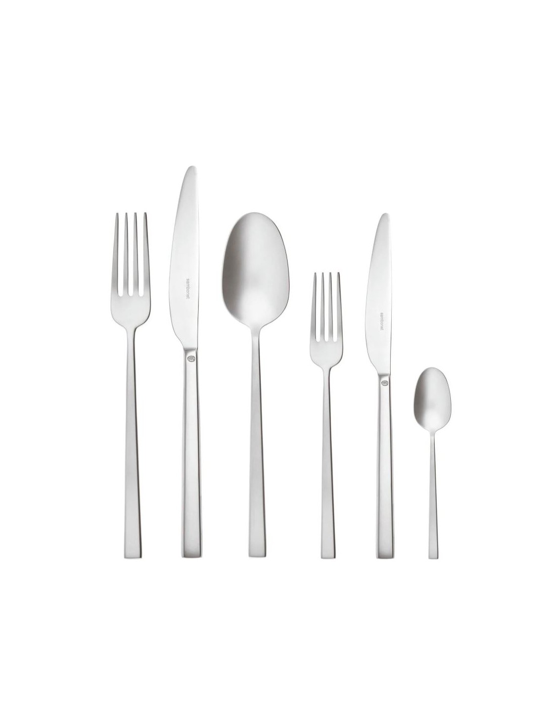 Il set pz.36 è composto da: 6 forchette, 6 coltelli, 6 cucchiai, 6 cucchiaini, 6 forchettine frutta, 6 coltellini frutta
